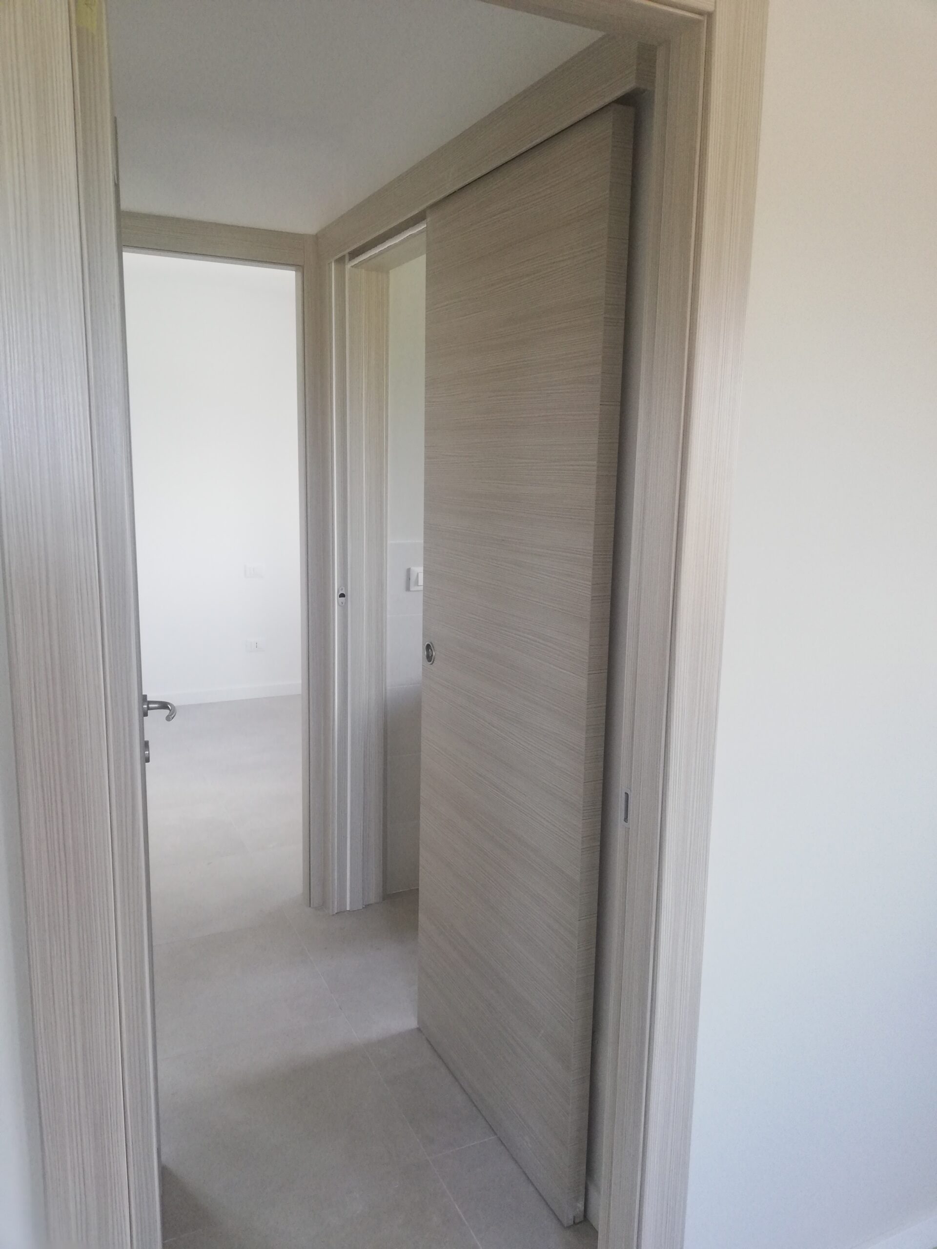 Piastrelle Marazzi serie Stream in formato 60x60 a pavimento e 25x76 a parete, Scaldasalviette Irsap serie Ares, Piatto doccia Vanita Docce serie Cupido, Box doccia Vanita Docce serie Aton, Arredo bagno Punto Tre serie Sistema Gola, Rubinetteria Vanita Docce serie Deck, Sanitari Hatria serie Bianca, Porte interne Pessot serie Pordenone